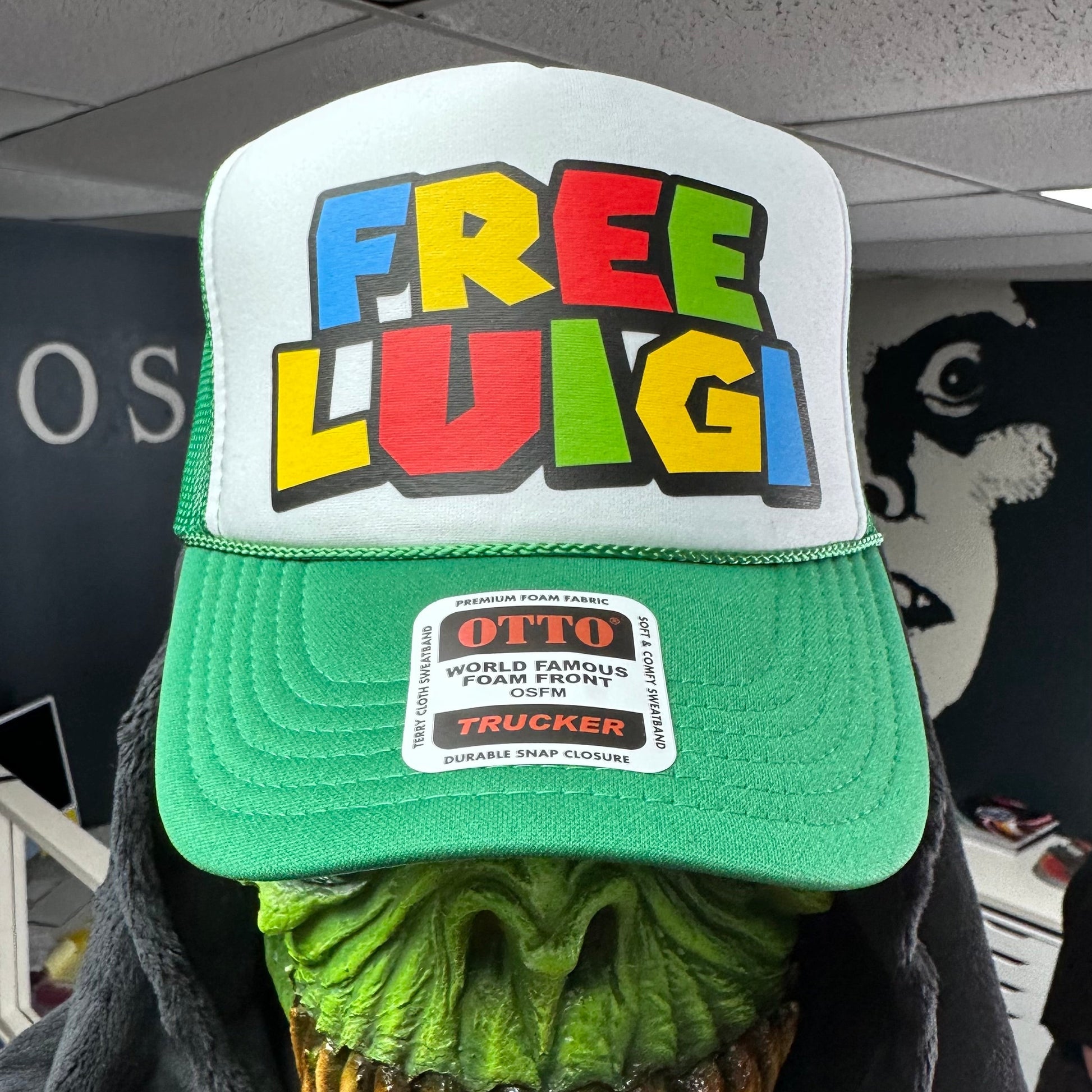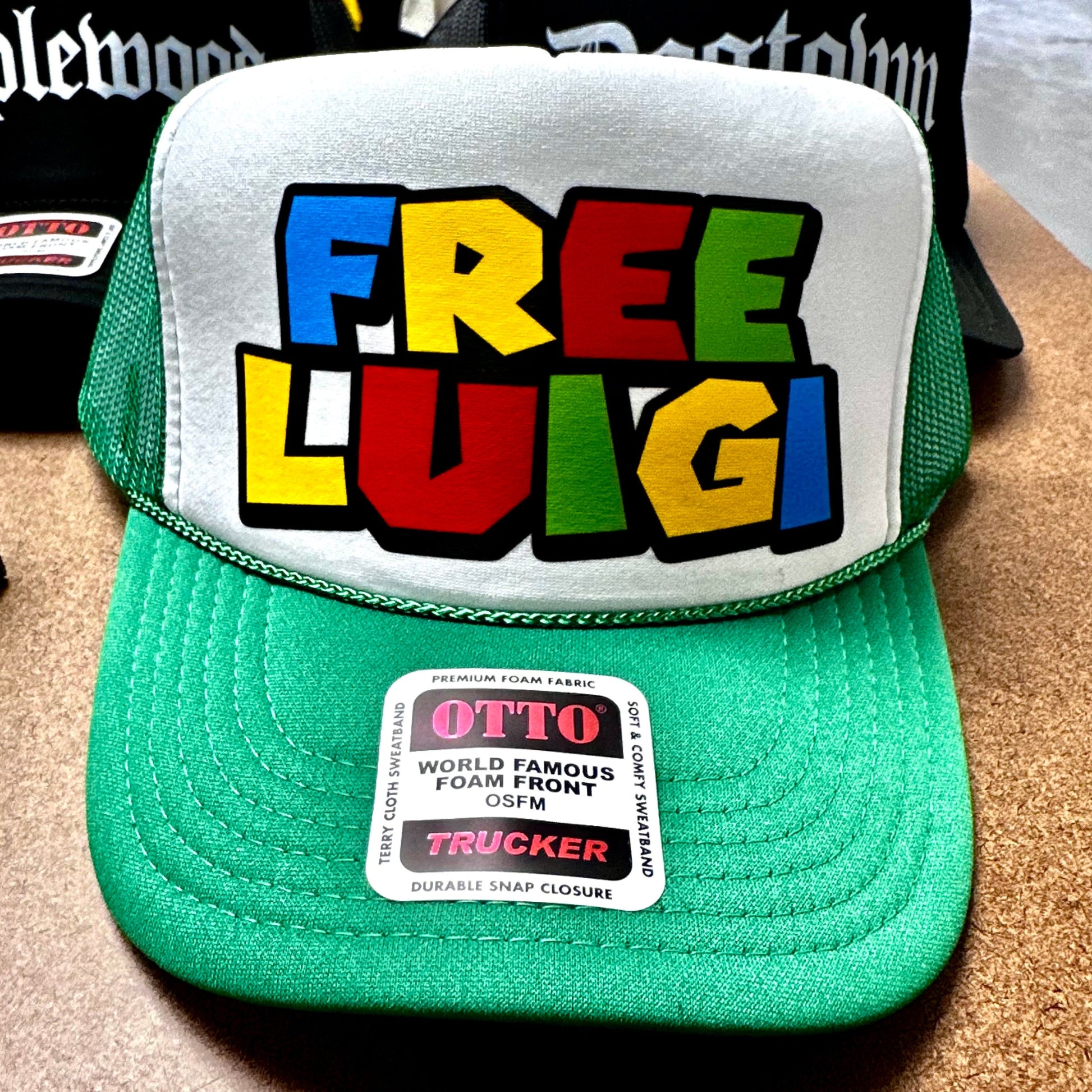 Kelly green and white foam trucker cap available in high crown or mid profile.