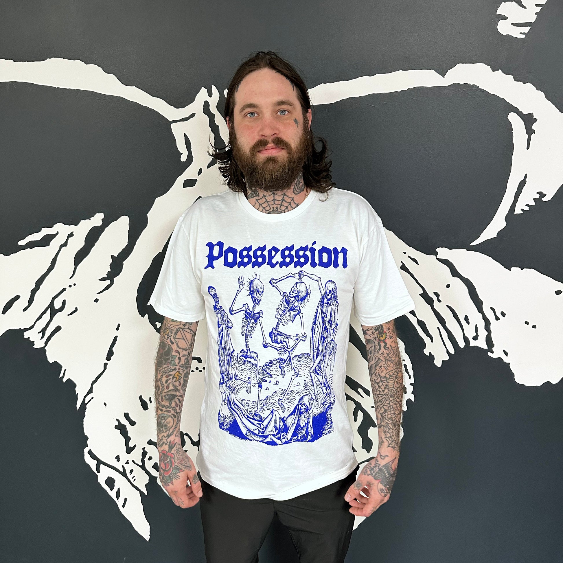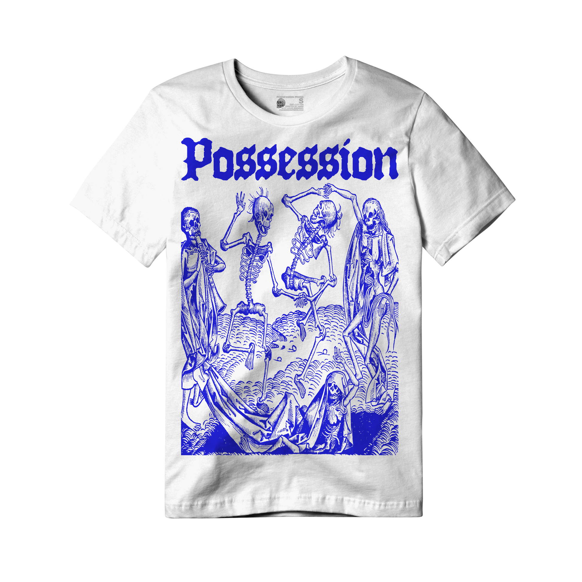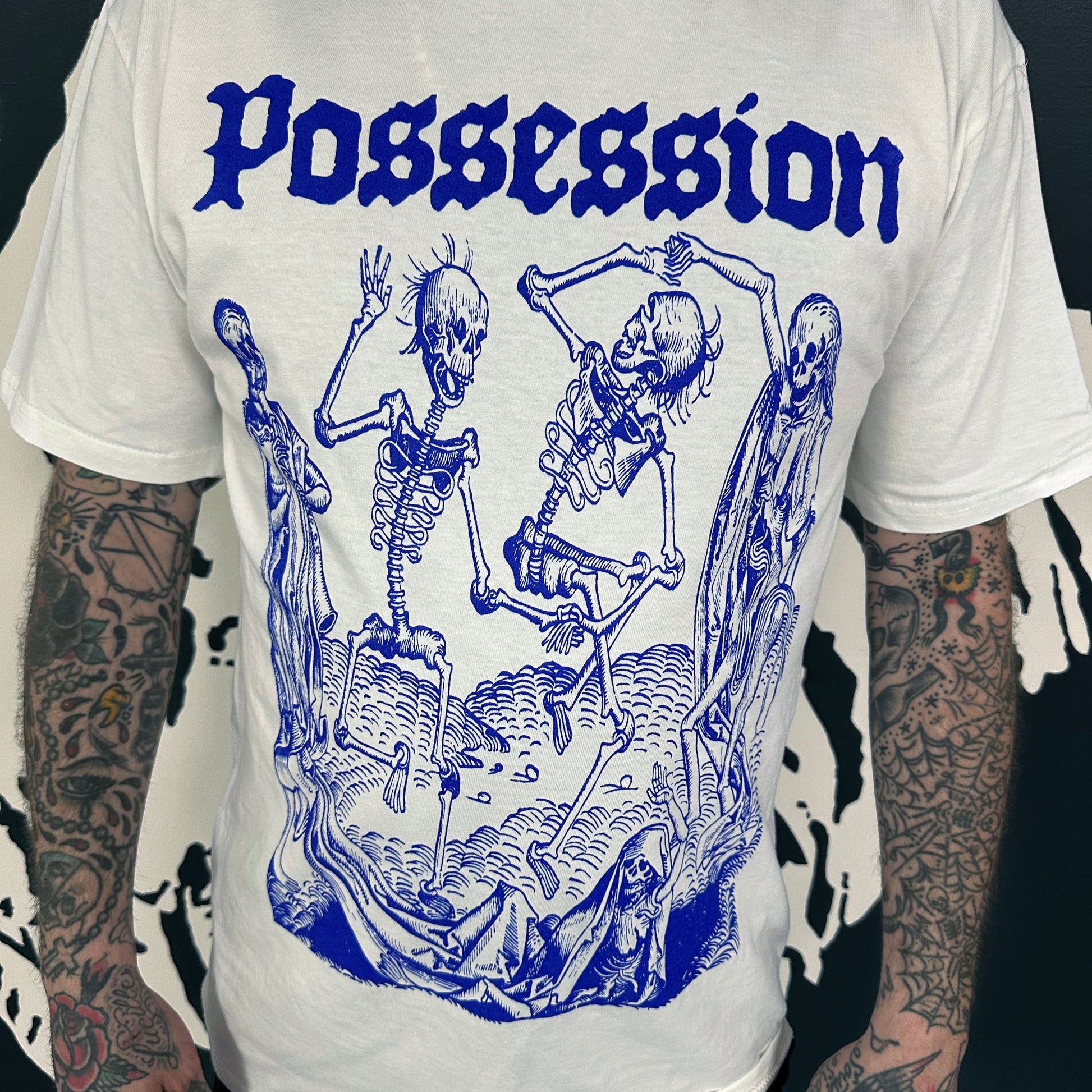 Blue print on soft 100% white heavyweight side seamed cotton tees