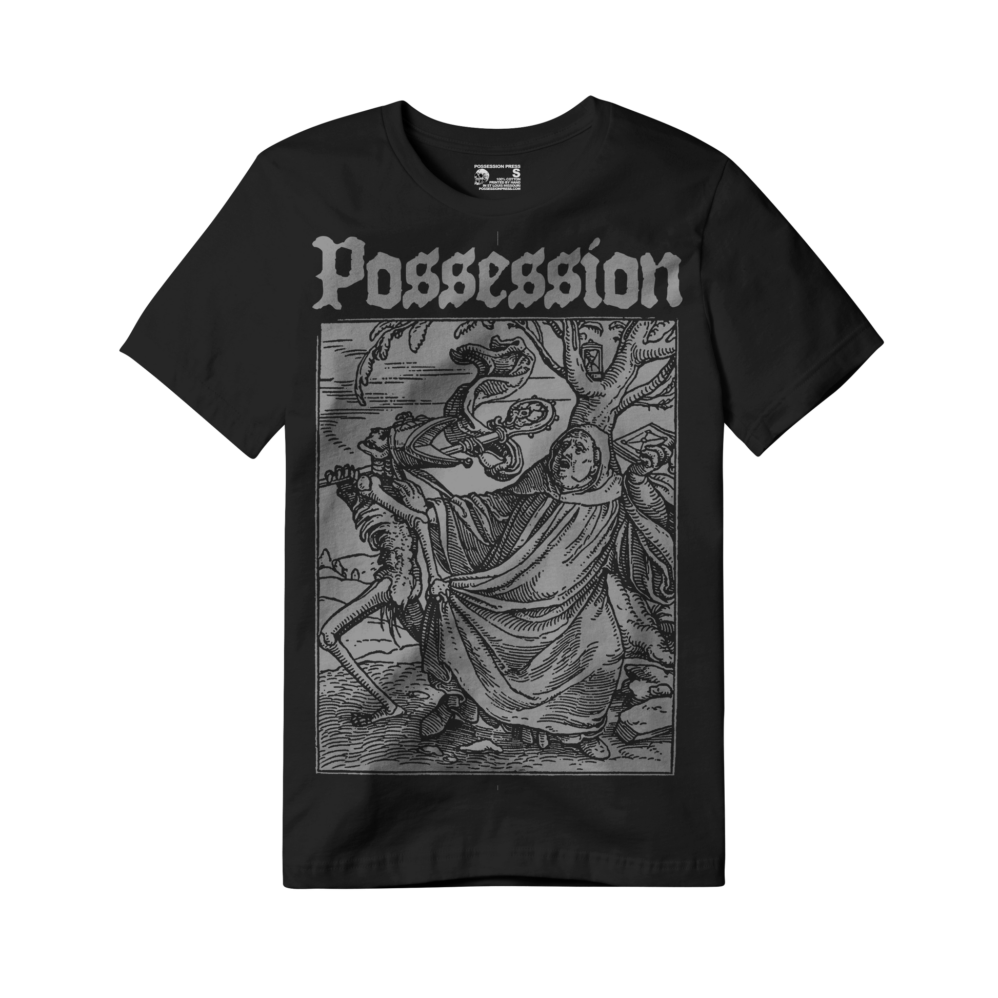 Gray print on soft 100% black heavyweight side seamed cotton tees