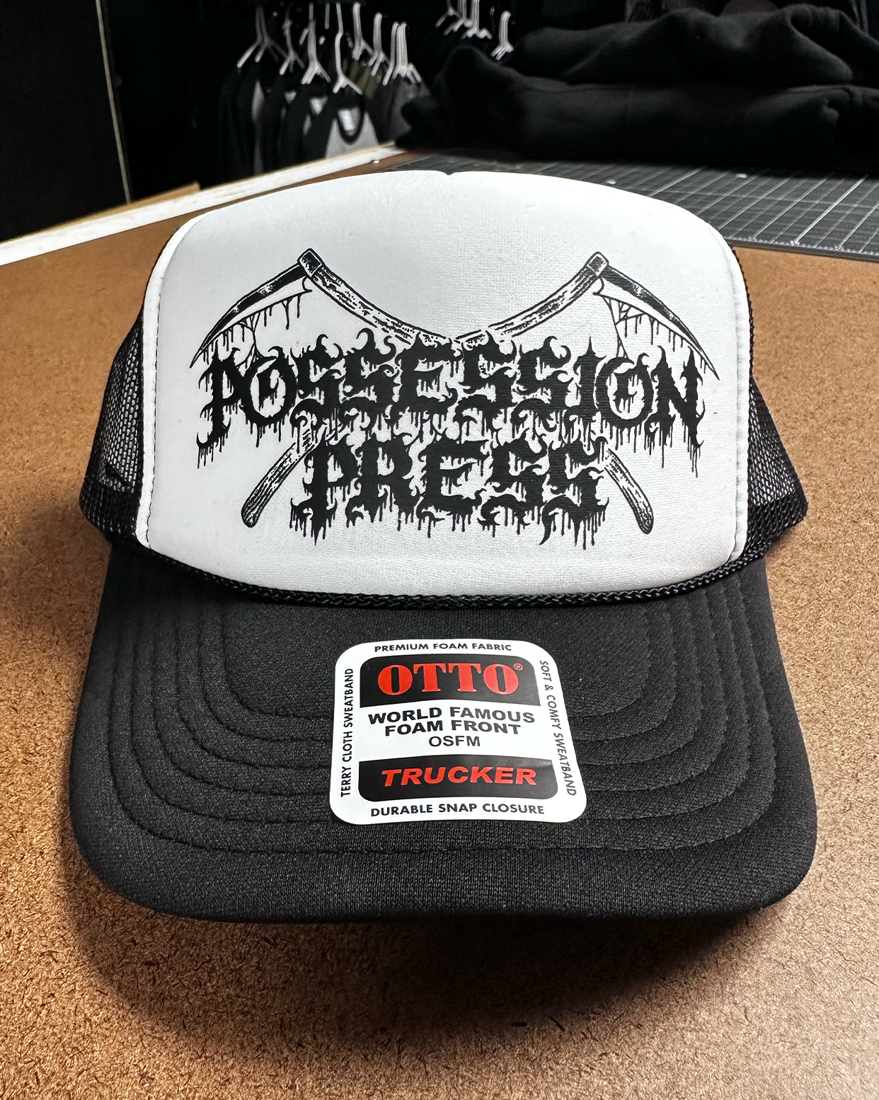 Possession Press - Scythe Logo Black & White Trucker Cap